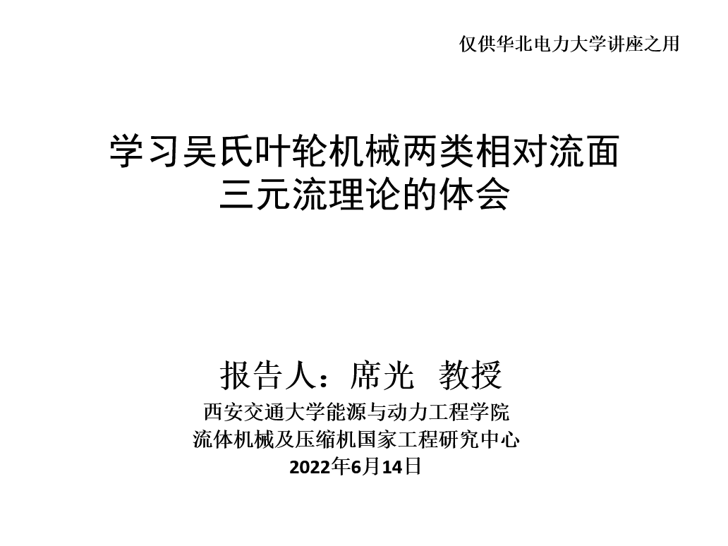 2022年6月14日,席光教授受华北电力大学动力工程系邀请,在举办的第45期“吴仲华讲坛”做学术报告。华北电力大学动力工程系的教师、研究生及吴仲华学院的本科生等200余人报参加了线上的学术报告会。
