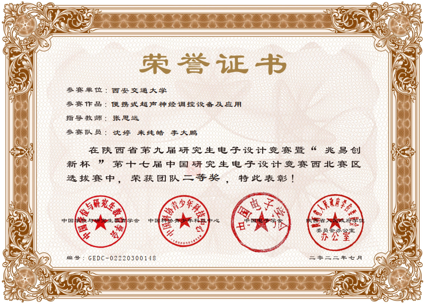 祝贺课题组在第十七届中国研究生电子设计竞赛中获西北赛区二等奖