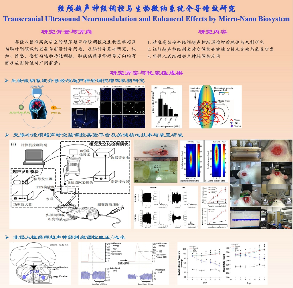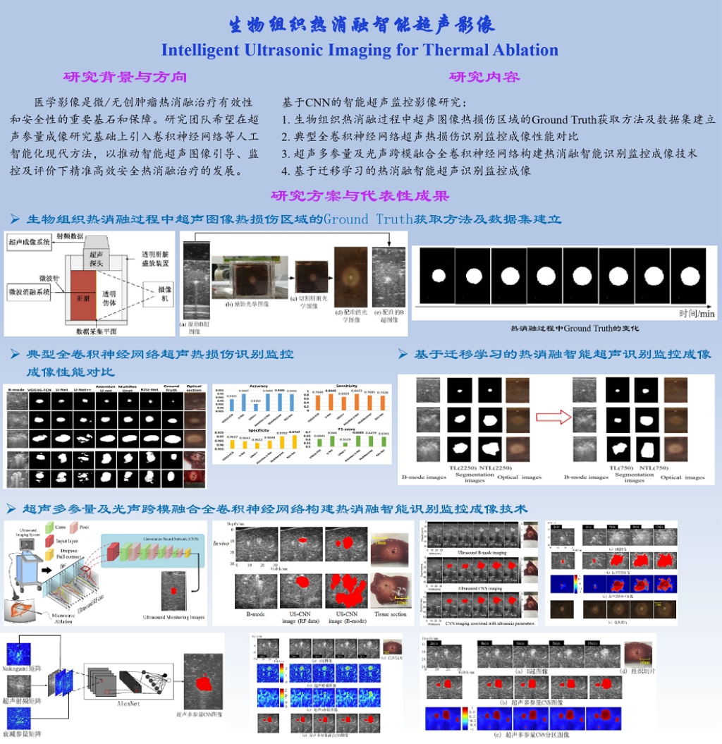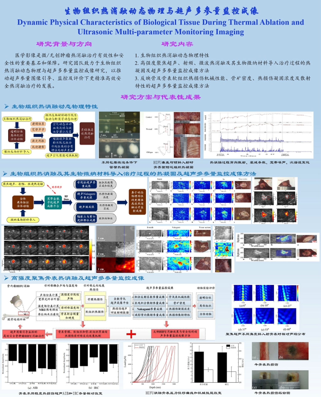 研究方向为生物医学超声(Biomedical Ultrasound),主要研究内容包括:智能超声影像(Intelligent ultrasound imaging)、热消融(Thermal ablation)动态物理及其超声监控成像(Ultrasound monitoring imaging)、经颅超声神经调控(Transcranial ultrasound neuromodulation)及生物微纳系统介导(Mediation)精准高效超声诊疗等。
