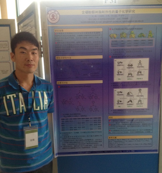 会议期间,研究组边城同学做了题为“酚醛树脂耐热性的的分子模拟”的口头报告,并展出了题为“含硼酚醛树脂耐热性的量子化学研究”的墙展。