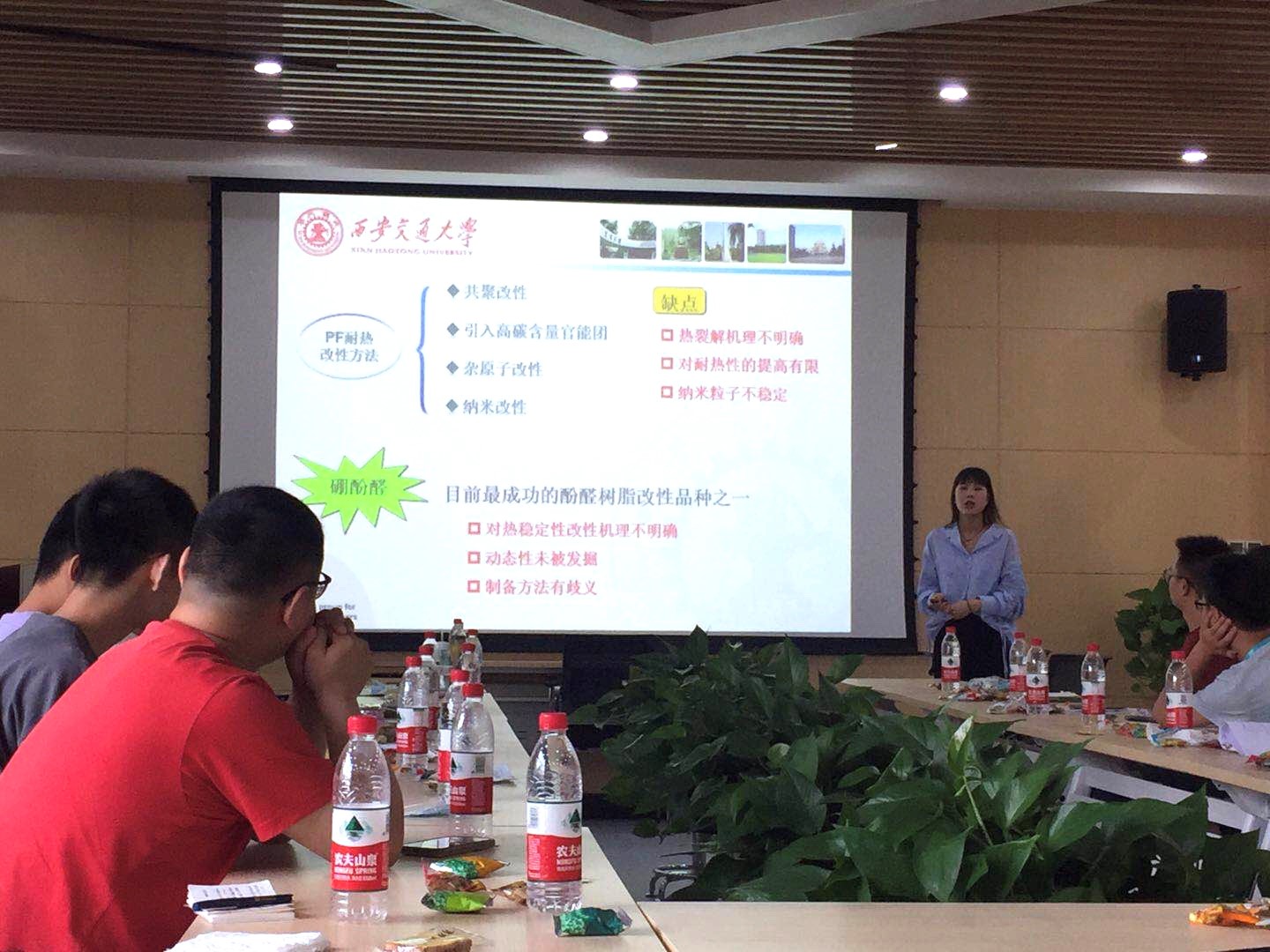 课题组硕士生张萍结合目前开展的研究工作,做了“高热稳定性酚醛树脂的制备与性能研究”的报告。