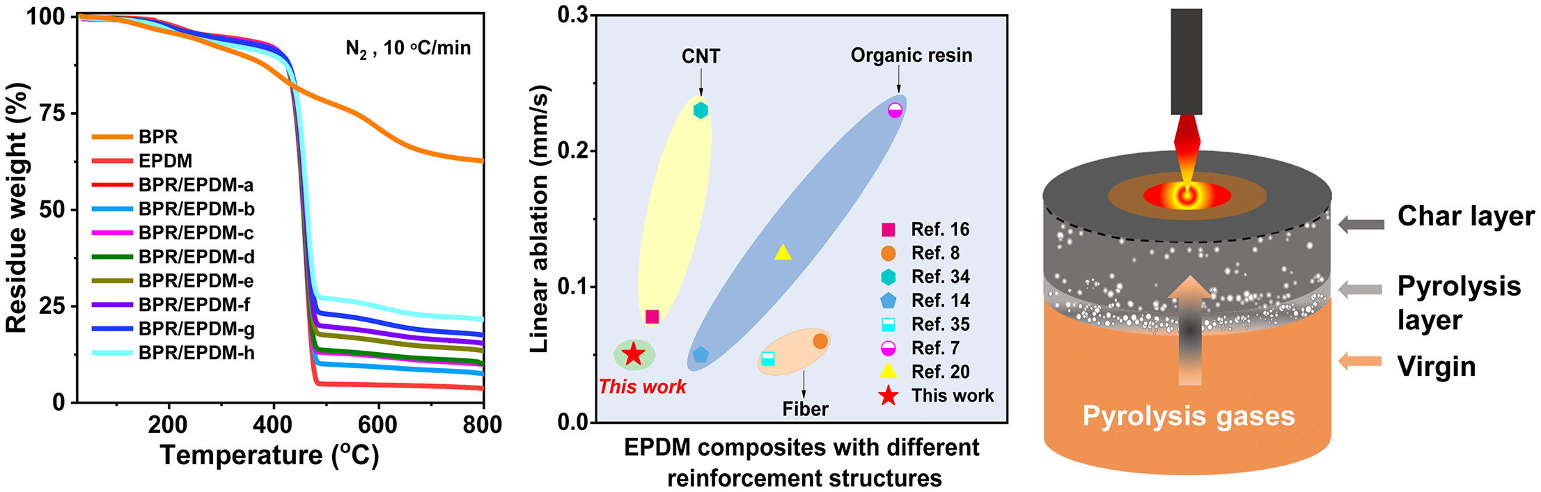Recently, one paper titled “Enhanced thermal resistance and ablation properties of ethylene-propylene-diene monomer rubber with boron-containing phenolic resins” was published on Reactive and Functional Polymers. The first author of the paper is Prof. Shujuan Wang, and the corresponding author is Prof. Xinli Jing.
