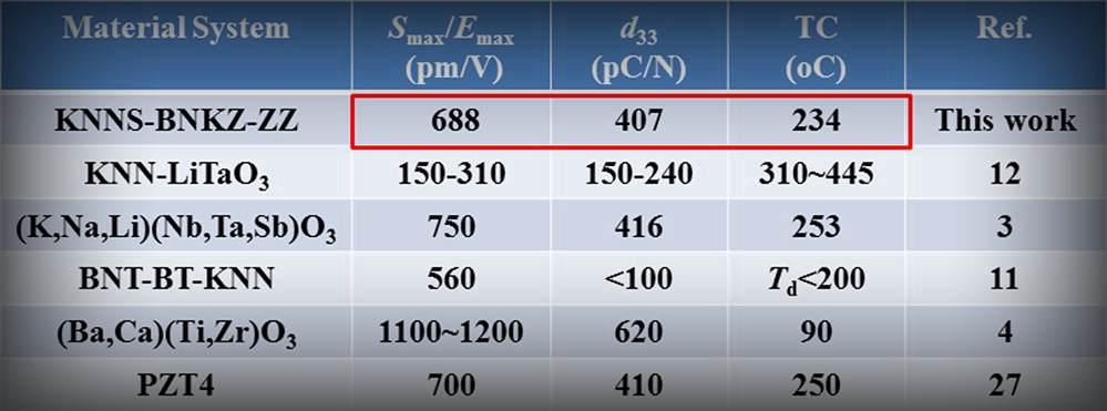 207.Feng Li*, Kejun Hu, Zhengkai Hong, Xiaoqin Ke, Xiaojie Lou, Xiaoxiao Chen, Zhonghui Shen, Dongsheng Song, Binghui Ge, Mingsheng Long, Lei Shan, Jiwei Zhai, Chunchang Wang*, Jianli Wang, Zhenxiang Cheng*, Polarity Modulation Induced High Electrostrain Performance with Near-Zero Hysteresis in a (Sr0.7Bi0.2□0.1)TiO3-Based System, ACS Applied Materials & Interfaces, 15, 1545-1553 (2023)