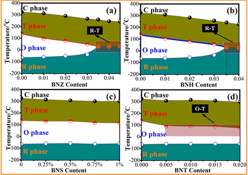 225. Ruifeng Yao, Yongbin Liu*, Jingzhe Xu, Jiaxin He, Ming Wu*, Lisheng Zhong, Jinghui Gao, and Xiaojie Lou*, Remarkably enhanced piezoelectric temperature stability in lead-free ferroelectrics by modulating element diffusion at laminated interfaces, Ceramics International 50, 51642 (2024).