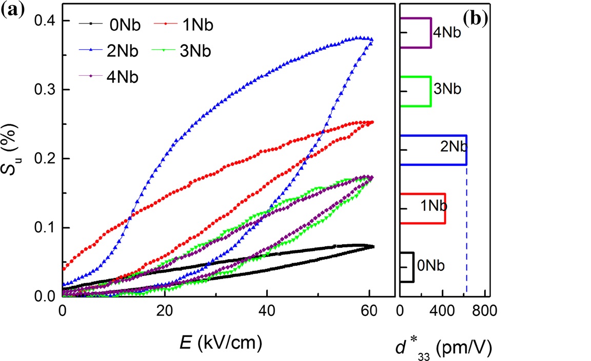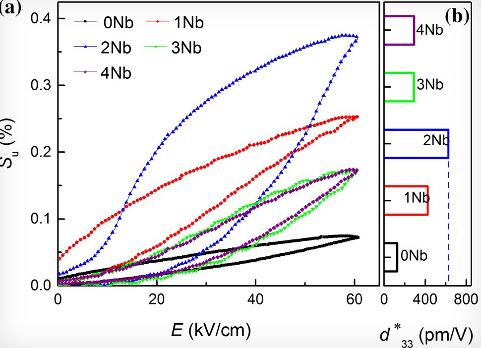 107. Cheng Wang, Tiandong Xia, Xiaojie Lou*, Shutao Tian, Giant strain response in 2 mol% Nb-doped (Bi0.5Na0.4K0.1)TiO3 lead-free ceramics, Journal of Materials Science, 52 (19), 11337-11345 (2017) [Link]