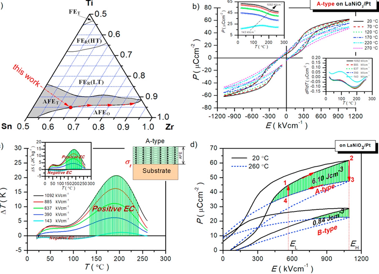 123. Mengyao Guo, Ming Wu, Weiwei Gao, Buwei Sun, Xiaojie Lou*, Giant negative electrocaloric effect in antiferroelectric PbZrO3 thin films at an ultra-low temperature range, Journal of Materials Chemistry C, 7(3), 617-621 (2019) [Link]