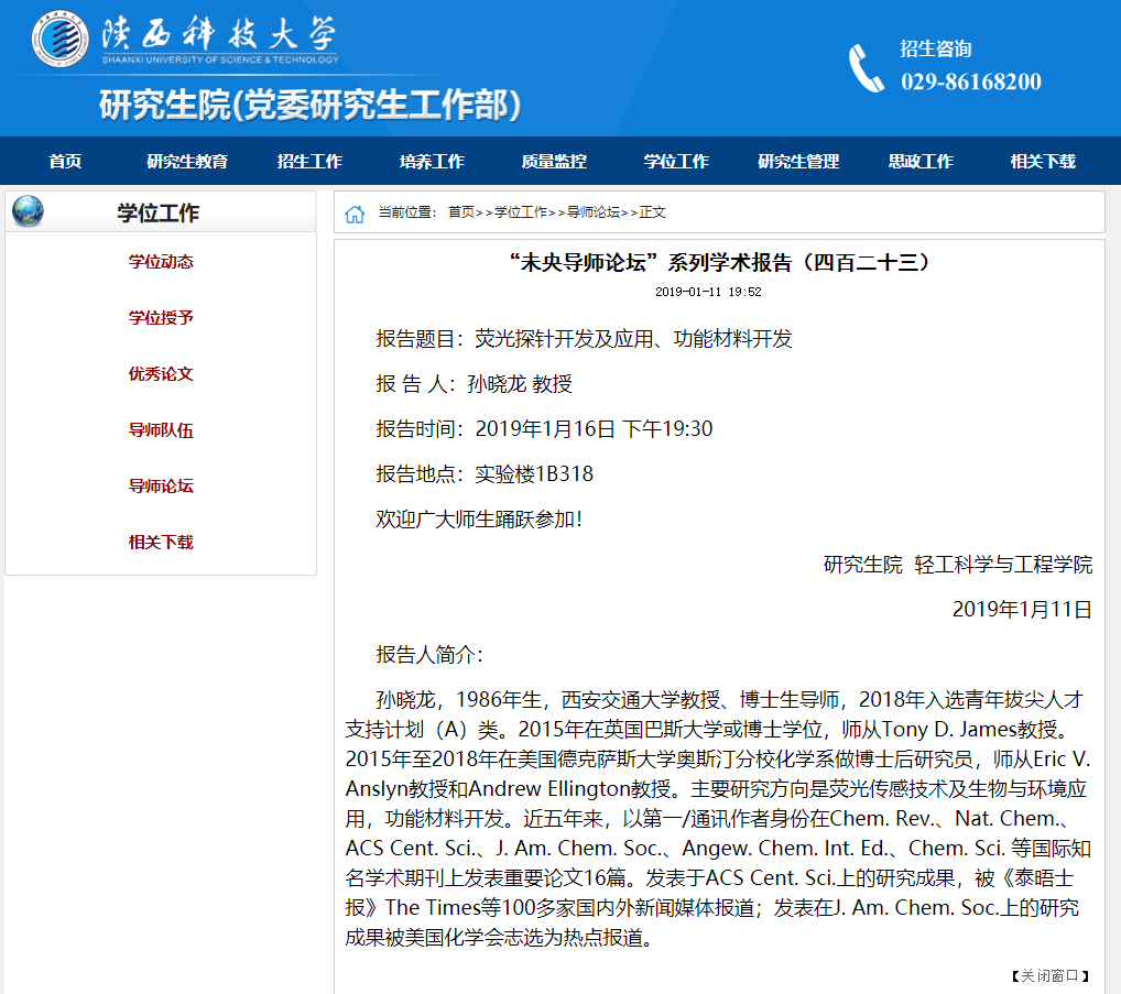 孙晓龙教授受邀在陕西科技大学未央论坛作邀请报告