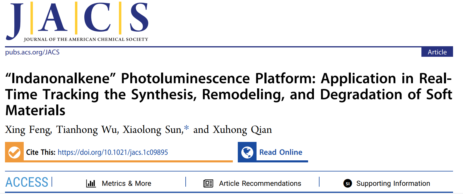 祝贺SunLab课题组两篇研究性论文发表在美国化学会志《Journal of the American Chemical Society》和化学与工程前沿《Frontiers of Chemical Science