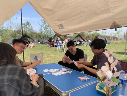 内容:2023年4月9日,期盼许久的春游,他来了! 早上7点半,集合出发。 9点半,到达位于白鹿原上的西安鲸鱼沟竹海风景区,观光浏览。 体验拓展项目,竹筒饭、快艇。 中午,来到“野奢范”露营为主要特色的嗨KING,烧烤娱乐。 合影留念。