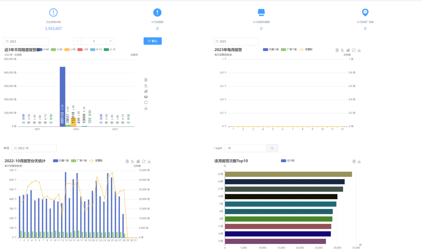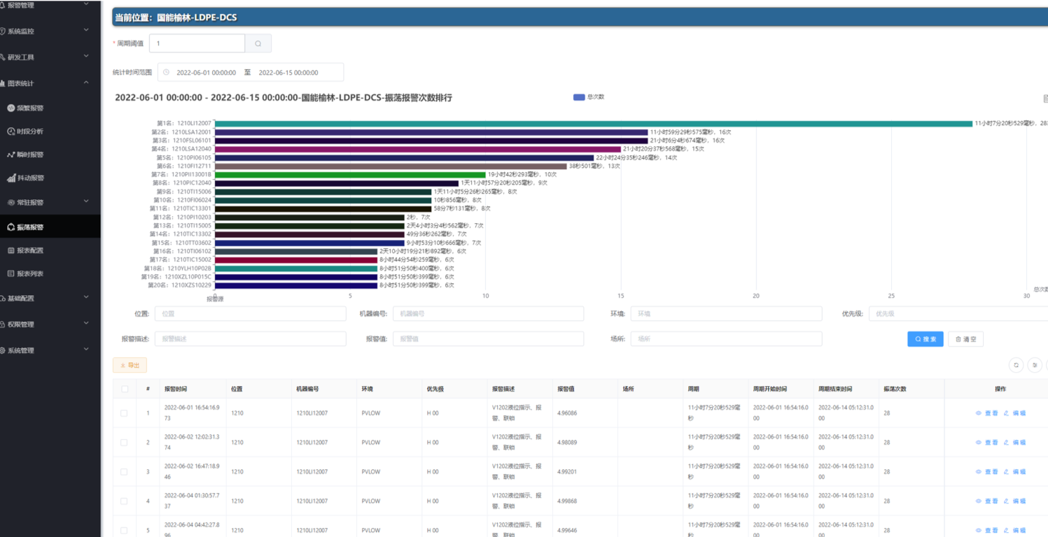 目标:针对大型工厂生产(信息)系统产生的海量报警数据,应用大数据技术进行报警信息智能分析及可视化展示。