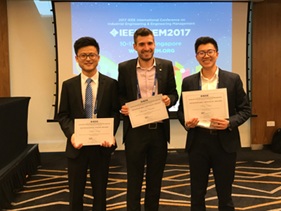 | 博士生邢赛博参加2017年12月在新加坡举办的工业工程与工程管理国际学术会议,并获杰出论文奖:2017 International Conference on Industrial Engineering and Engineering Management (IEEM2017), December 10-13, 2017, Singapore. |