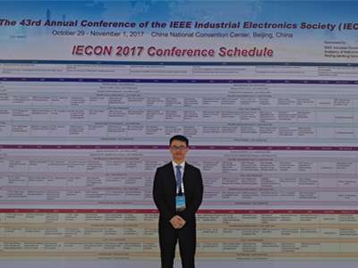 | 研究生周昕参加2017年10月在北京举办的第43届IEEE工业电子年会,并做报告:The 43rd Annual Conference of the IEEE Industrial Electronics Society (IECON 2017), Oct.29-Nov.1, 2017, Beijing. |