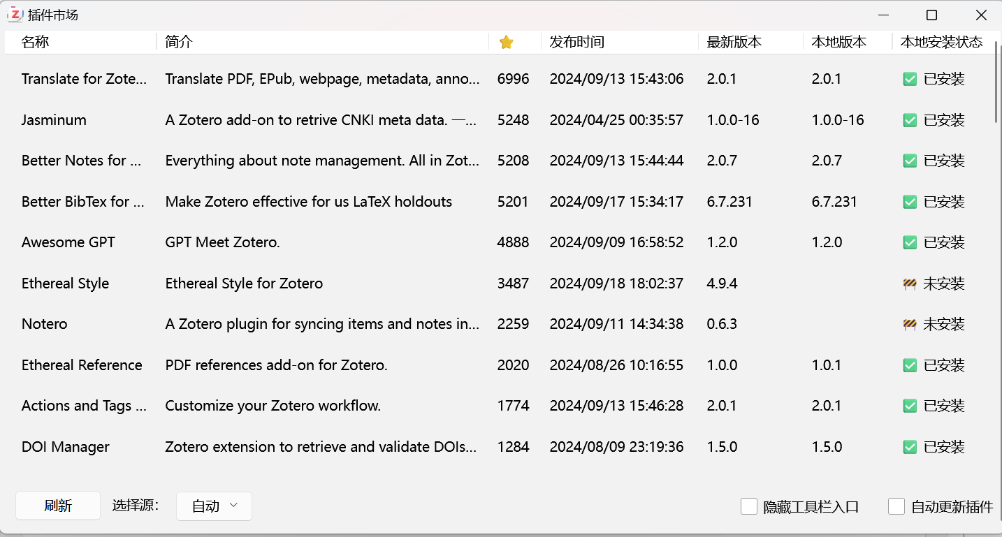 推荐安装Add-on Market for Zotero(Install add-ons directly in Zotero | Zotero Add-on Market | Zotero插件市场)