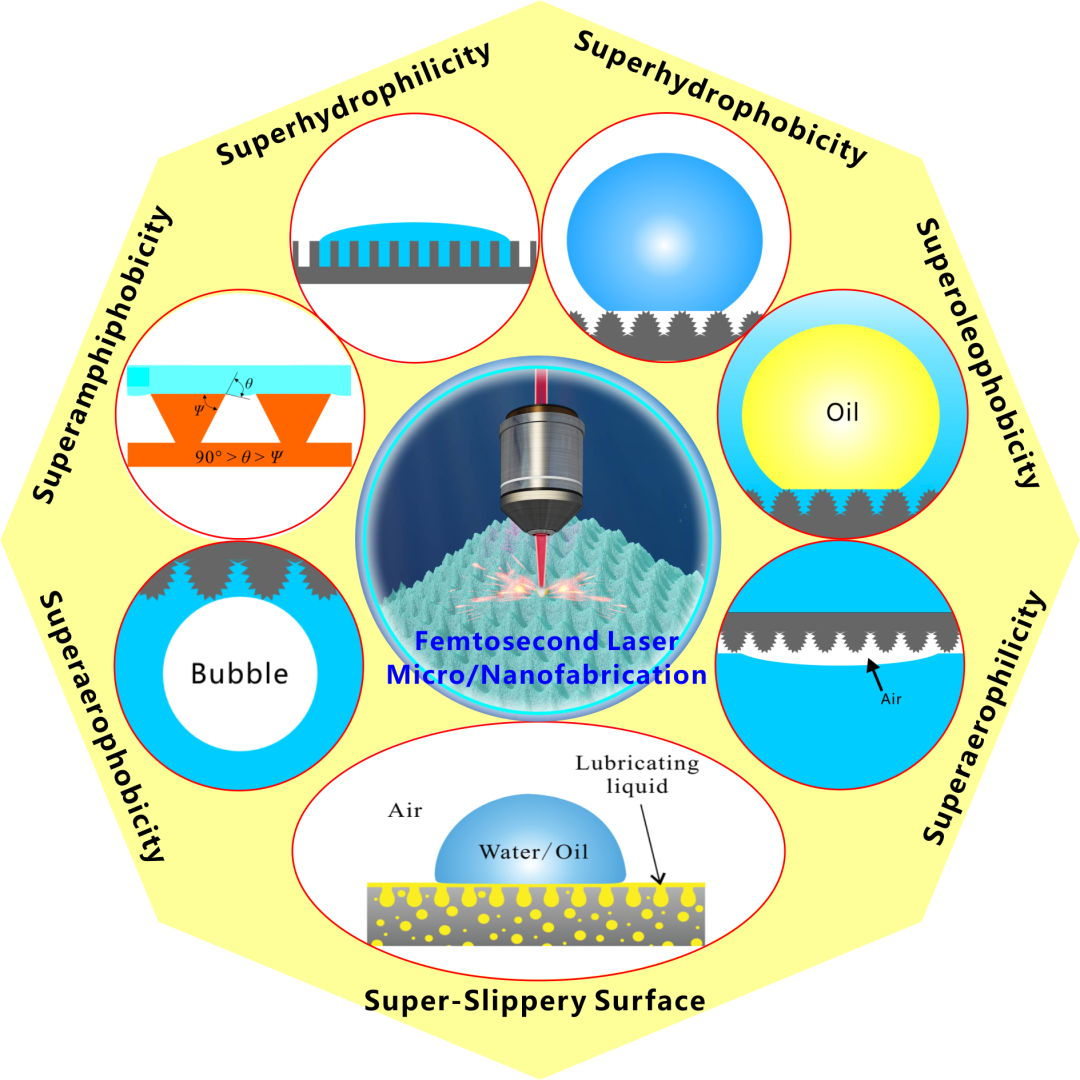 [97]. Yong, Jiale; Chen, Feng;* Yang, Qing; Jiang Zhuangde; Hou, Xun A Review of Femtosecond-Laser-Induced Underwater Superoleophobic Surfaces. Advanced Materials Interfaces, 2018, 5(7): 1701370.