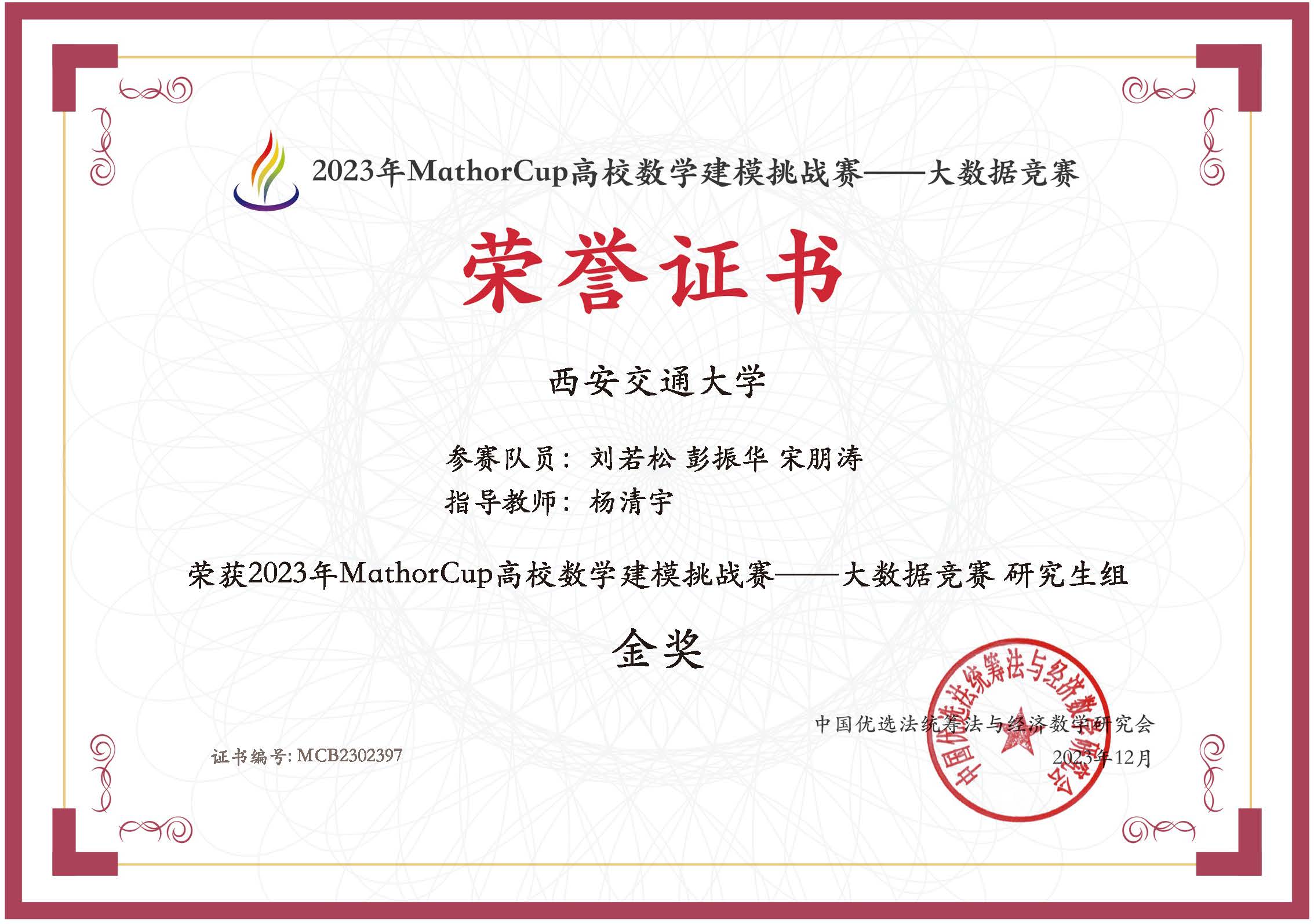 此外,课题组研究生在“第十三届APMCM亚太地区大学生数学建模竞赛”中荣获二等奖(15%)。