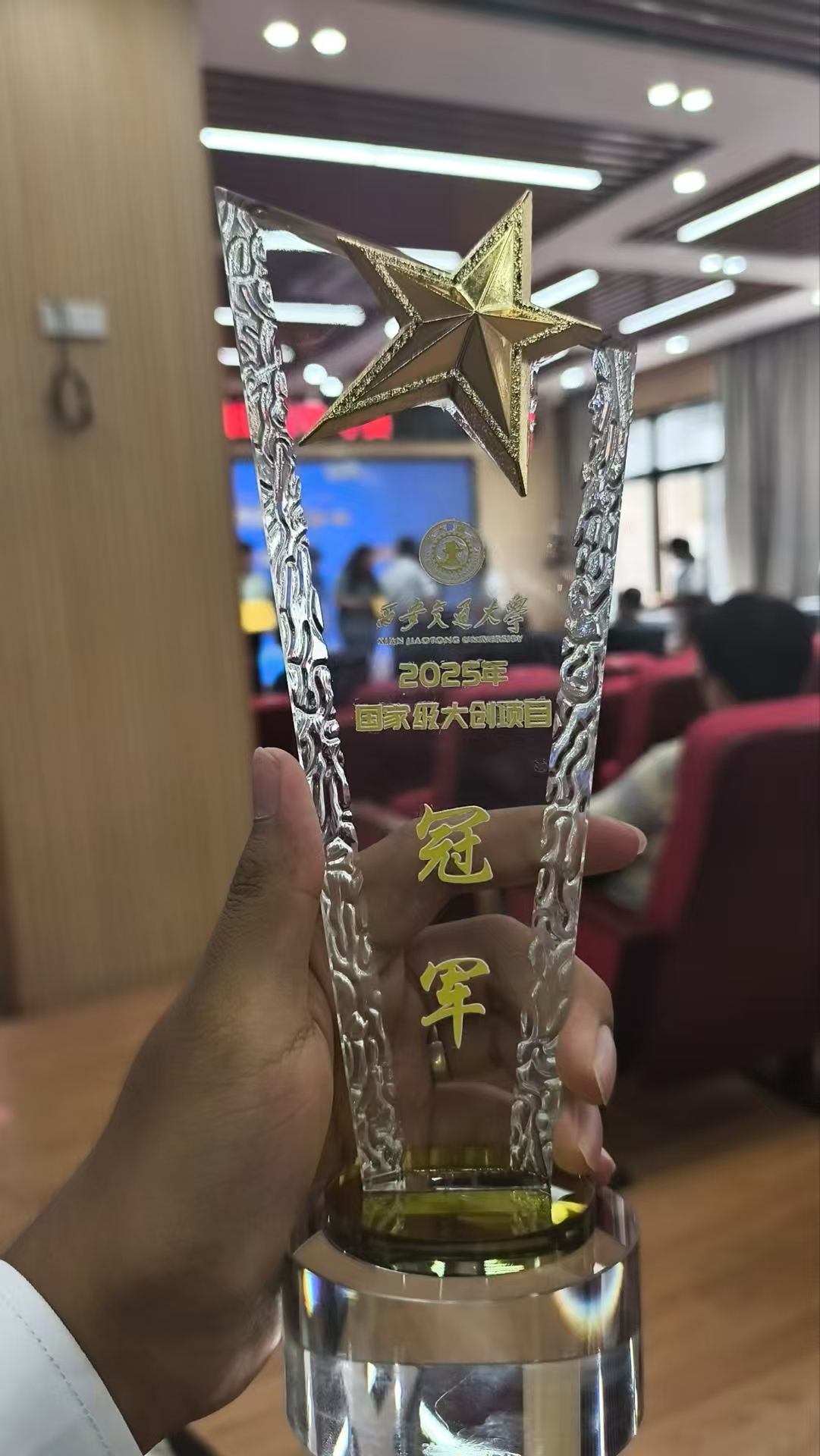 指导大三本科生参加大创项目,获得“产业赛道”的全校冠军,也是该赛道全校唯一一个金奖。