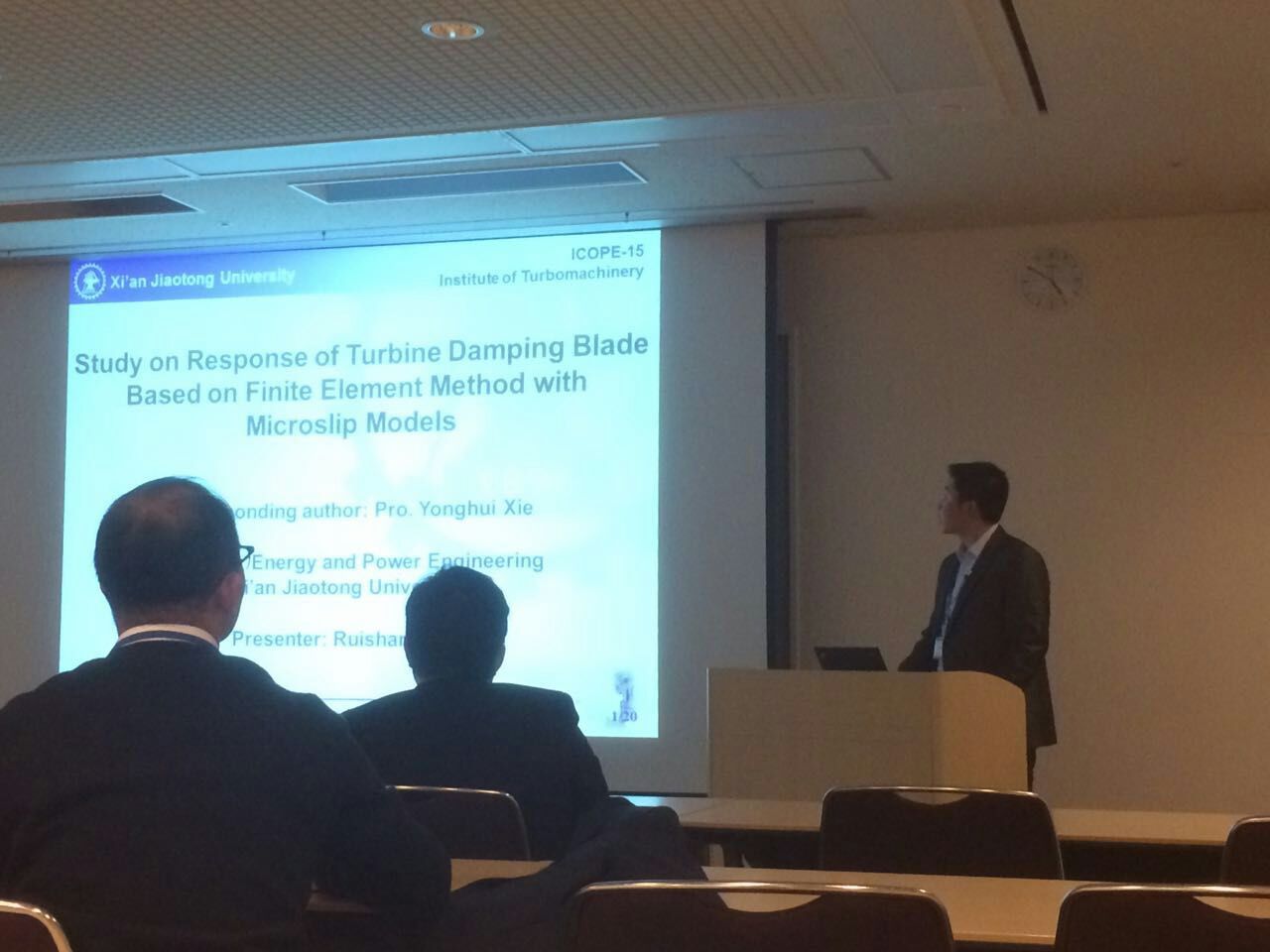 - 2015 年11月30日至2015年12月4日,ICOPE-15国际学术会议在日本横滨市隆重召开。此次会议由中国动力工程学会、日本机械工程师学会、美国机械工程师学会共同发起组织,来自世界众多高校、企业、研究所的知名学者参加了会议。课题组投稿论文《Study on Response of Turbine Damping Blade Based on Finite Element Method with Microslip Models》被接收,博士研究生袁瑞山代表课题组参加了此次会议。会议之余参观了红砖仓库等景点,领略了日本历史文化及当地美食。