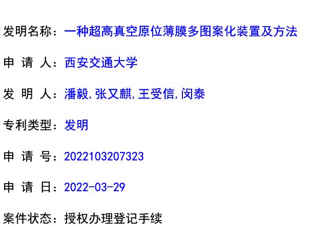 文章标题:全真空装备4 -专利授权:一种超高真空原位薄膜多图案化装置及方法