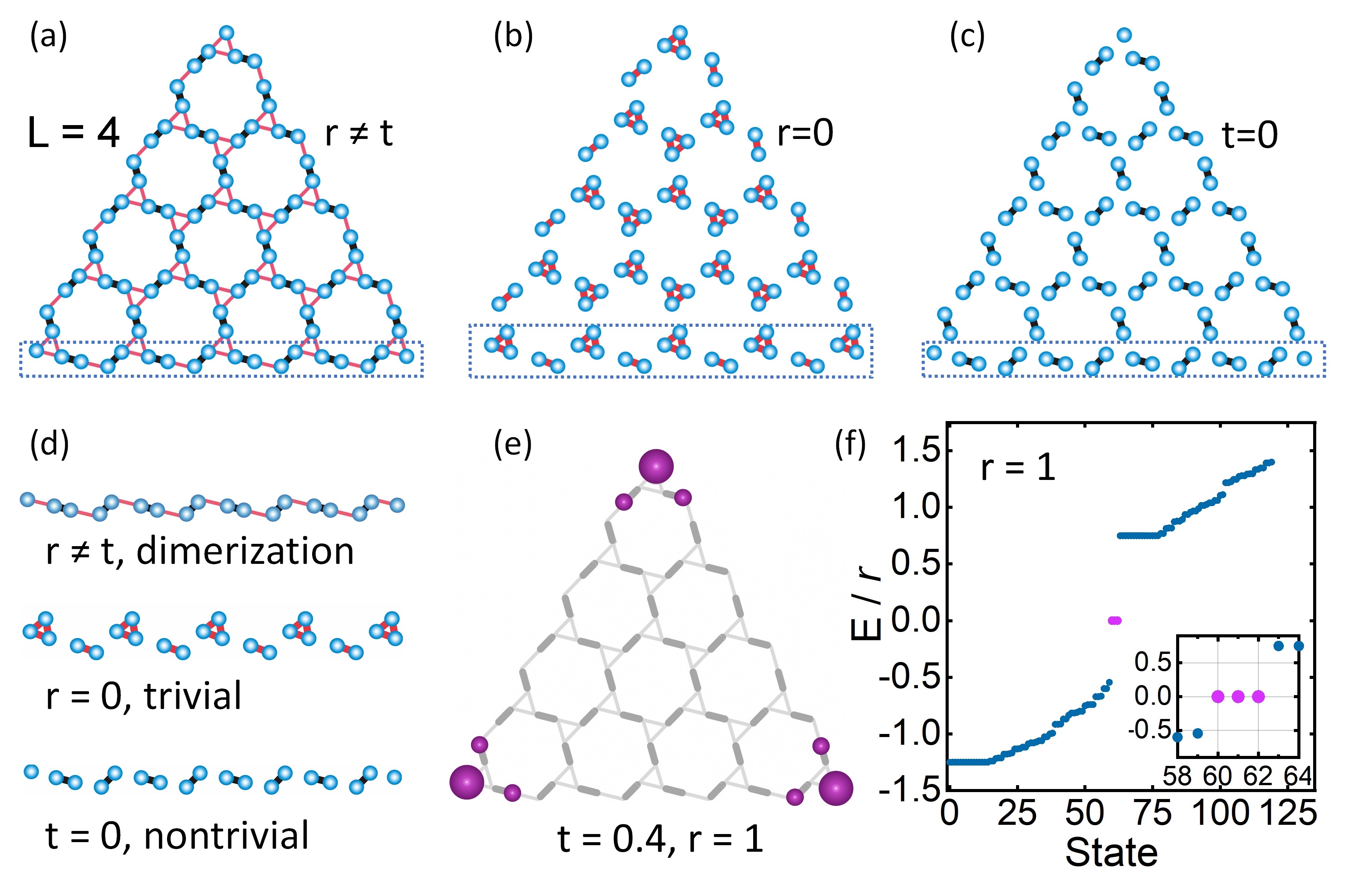 内容: The kagome lattice is a well-known model system for the investigation of strong correlation andtopological electronic phenomena due to the intrinsic flat band, magnetic frustration, etc. Introducing chirality into the kagome lattice would bring about new physics due to the unique symmetry, which is still yet to be fully explored. Here we report the investigation on a twodimensional chiral kagome lattice utilizing tight binding band calculation and topological index analysis. It is found that the periodic chiral kagome lattice would bring about a robust zeroenergy flat band. Furthermore, in the Su–Schrieffer–Heeger type dimer-/trimerized breathing chiral kagome lattice with particular edge terminations, topological corner states or metallic edge states would appear, implying new candidates for the second-order topological insulator. We also proposed the construction strategy for such lattices employing the scanning tunneling microscope atom manipulation technique. This work was mainly done by Xueyan Li. https://doi.org/10.1088/1361-6528/ad1442