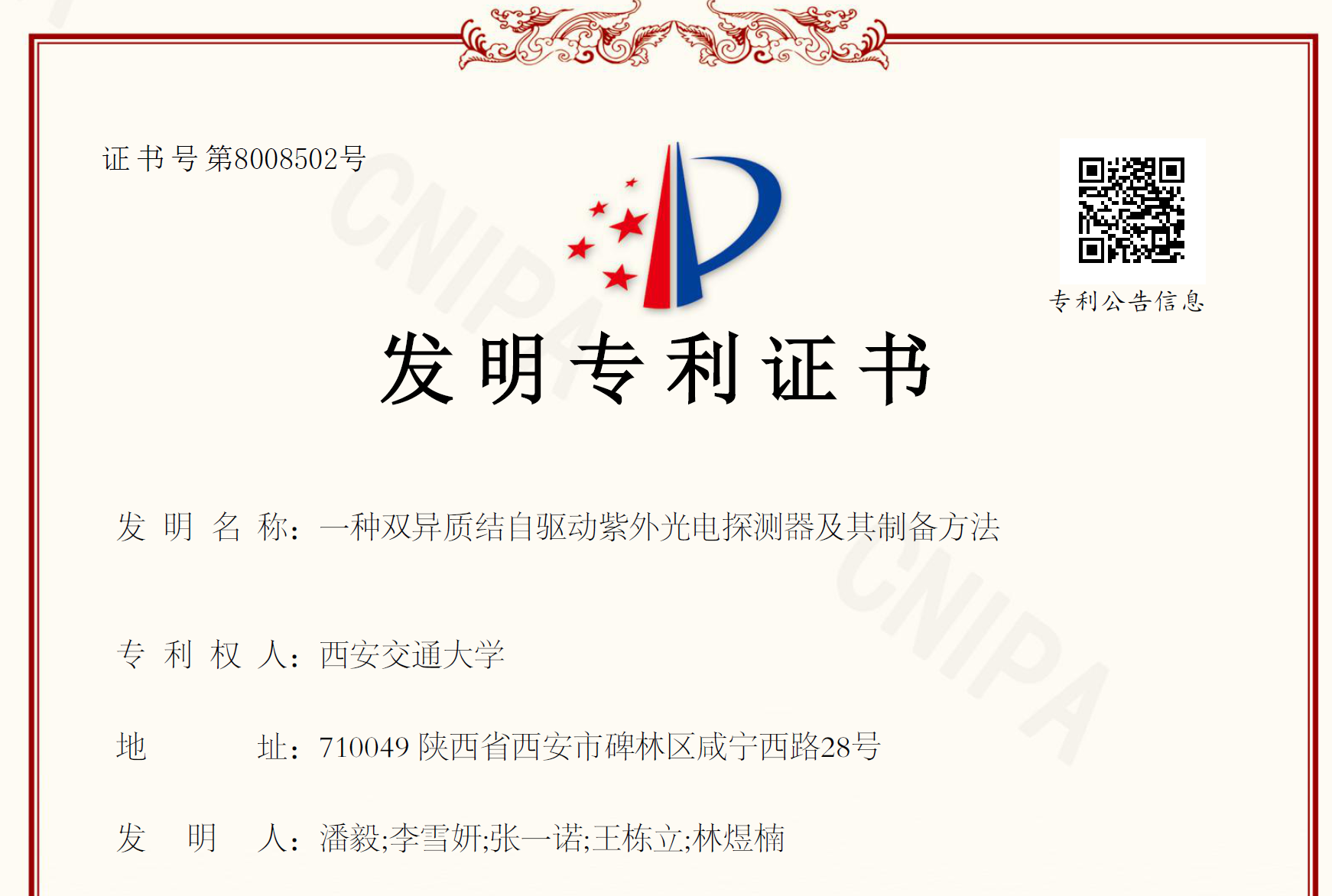 文章标题:全真空工艺器件 - 专利授权:一种双异质结自驱动紫外光电探测器及其制备方法