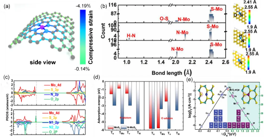 图4. 掺杂残余应变对电子结构和电催化效率的影响