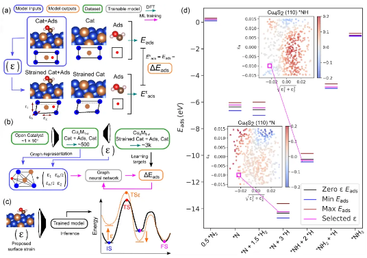 图11. 基于OCP数据集和DimeNet++架构考虑应变效应的高效电催化剂筛选