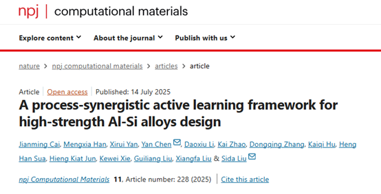 研究进展 | npj Comput. Mater. 一种面向高强Al-Si合金设计的工艺协同式主动学习框架