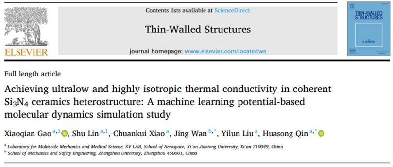 近日,西安交通大学航天航空学院刘益伦教授团队在国际知名期刊《Thin-Walled Structures》发表了题为《Achieving ultralow and highly isotropic thermal conductivity in coherent Si3N4 ceramics heterostructure: A machine learning potential-based molecular dynamics simulation study》的研究论文。本文聚焦于氮化硅陶瓷材料的热输运特性,构建了高精度的神经进化势模型(Neural Evolutionary Potential, NEP),并结合分子动力学模拟系统探讨了单晶Si3N4及α/β-Si3N4共格异质结构在不同工况下的热输运行为。