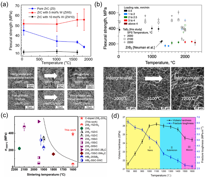 图2. 高温环境下UHYCs微结构演化行为与力学性能