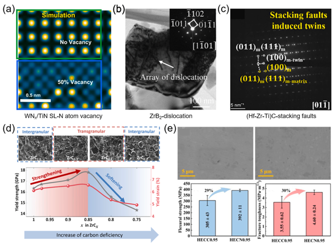 图3. 超高温陶瓷的纳观结构缺陷与强韧化机制