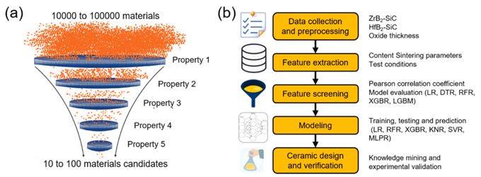 图6. 高通量计算框架和机器学习方法在超高温陶瓷领域中的应用