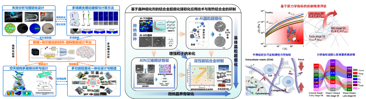 胸怀“国之大者”、锚定解决“卡脖子问题”是交叉力学团队一直以来的目标航向和行为准线。团队聚焦空天高性能复合材料多维度变形和响应、生命体重大疾病时空演化过程中的力学难题,提出了基于多尺度力学分析与人工智能的材料设计和疾病精准评估新范式。发展了微结构敏感强度和挠曲声子热输运理论,实现了2.6 GPa强韧性合金、强韧化及智能化氧化石墨烯纤维。此外,建立了考虑细胞和组织结构的多级结构理论,阐明了细胞幂律粘弹性行为的形成及调节机制,创新性地提出了疾病精准评估的新力学新指标。研究成果发表于Science(2篇)、Nature等一系列国际知名期刊,被基金委基金要闻、科学网、Physics World等广泛报道。近五年承担国家自然科学基金重大项目、国家重点研发计划、国家自然基金杰出青年基金、国家自然科学基金优秀青年基金、陕西省杰出青年科学基金等。积极推进产学研融合,主持建立了“西安交大-成兴国投无序新材料实验室”以及“成兴国投—西安交大医疗器械力学交叉与健康诊断中心”两个千万元级校企研究院,推动科研成果产业化。团队获陕西省三秦创新团队、西安交通大学医工交叉创新团队、西安交通大学师德建设示范团队等。团队通过科研反哺教学、转化带动实践,培养了一批有本领、有担当的青年科技工作者。