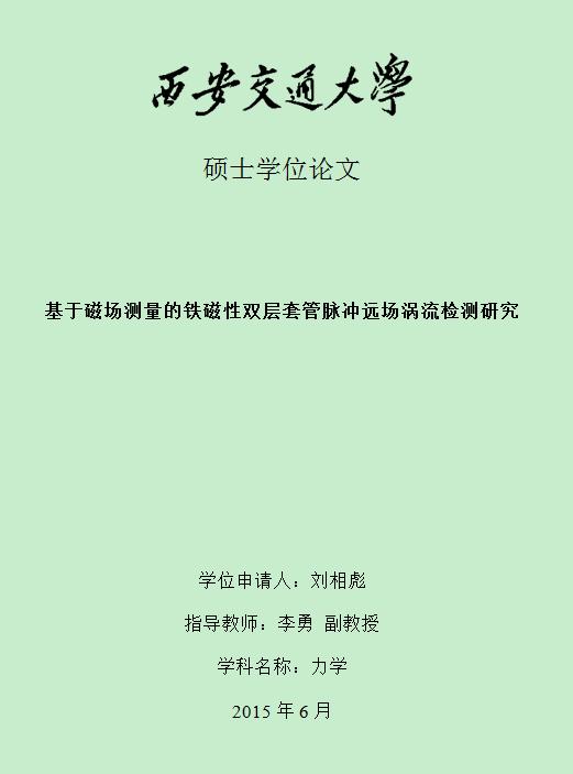 论文题目:基于磁场测量的铁磁性双层套管脉冲远场涡流检测研究