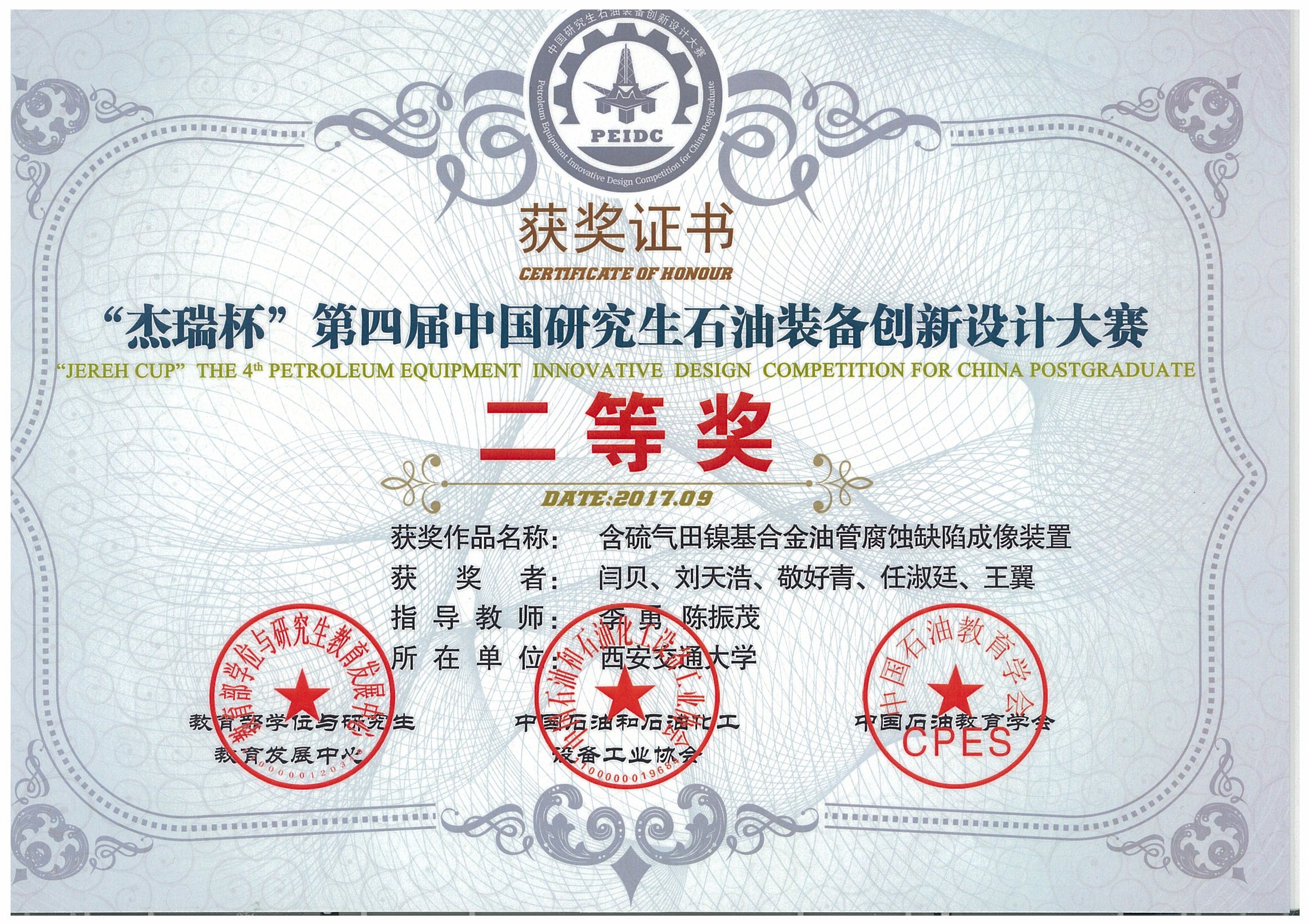 - 热烈庆祝闫贝等同学获中国研究生石油装备创新设计大赛二等奖