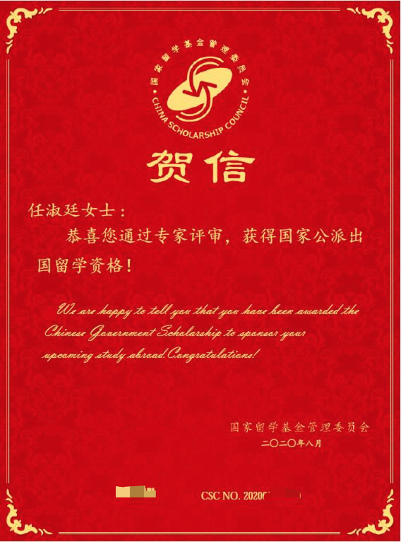 - 祝贺任淑廷获得国家公派出国留学资格!