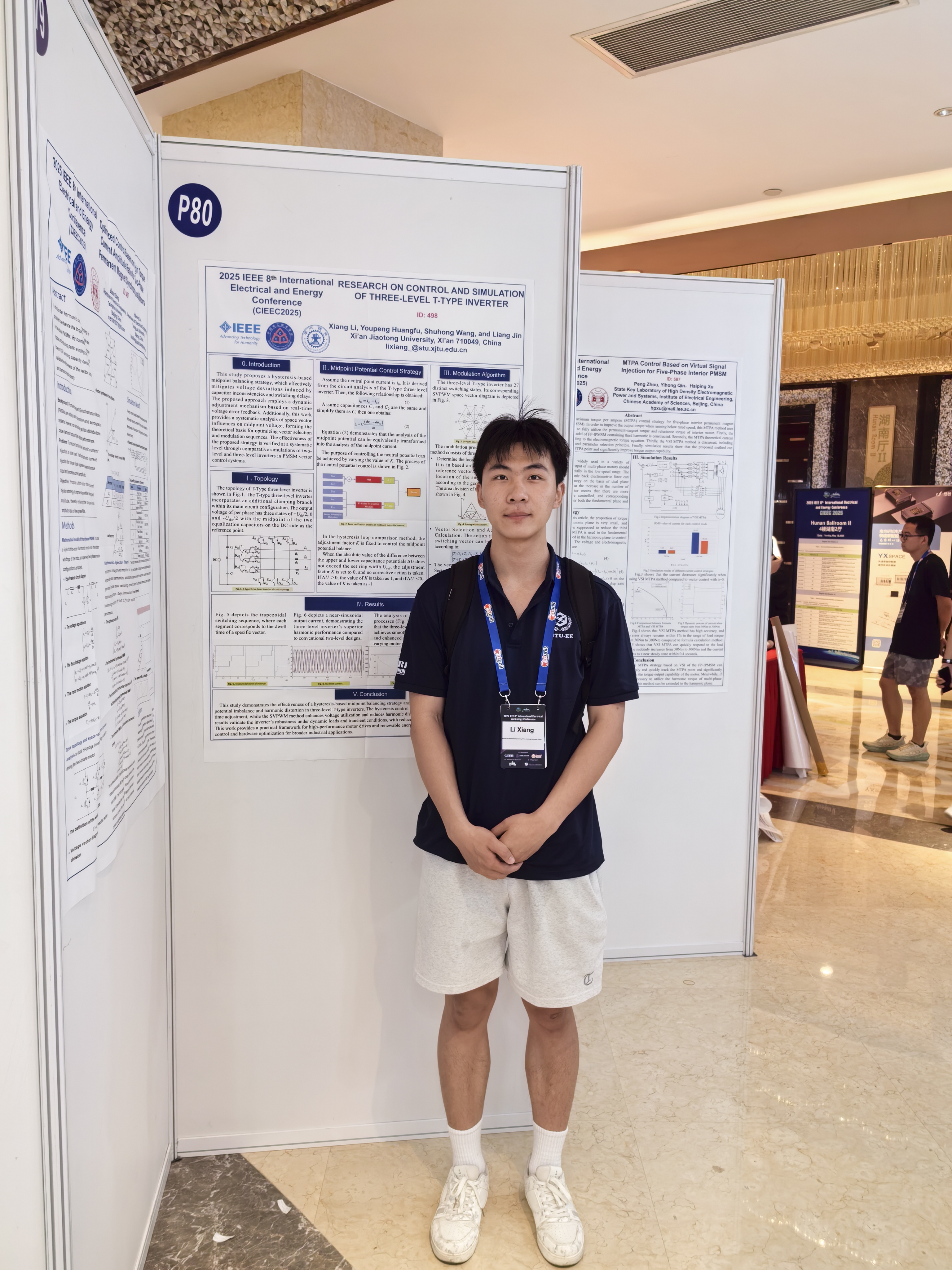 2024级硕士研究生李想同学于2025年5月16-18日参加于长沙召开的2025 IEEE第八届国际电气与能源大会(2025 IEEE 8th International Electrical and Energy Conference, CIEEC2025,www.cieec.com.cn/),并做题目为“RESEARCH ON CONTROL AND SIMULATION OF THREE-LEVEL T-TYPE INVERTER”的海报展出。