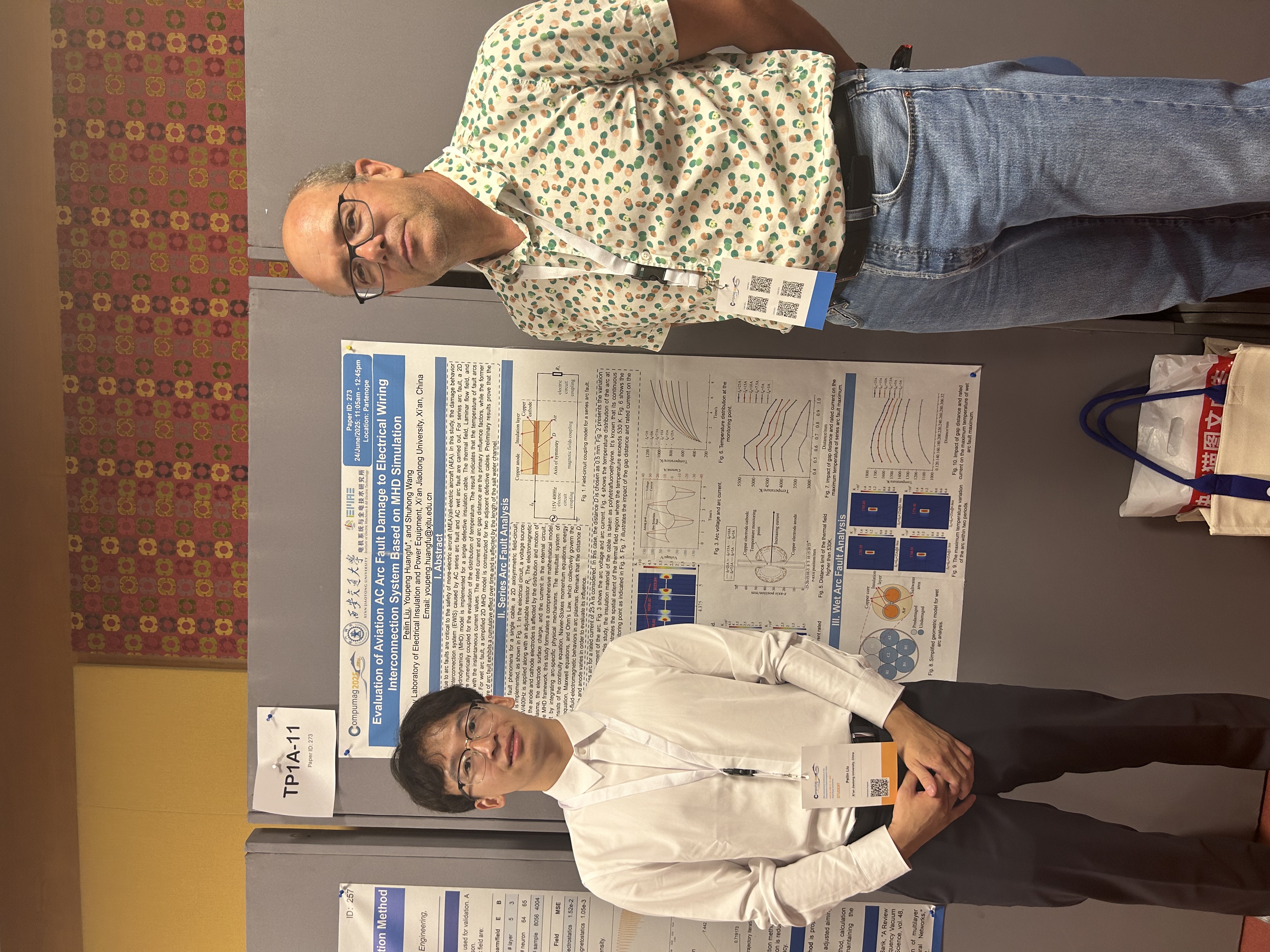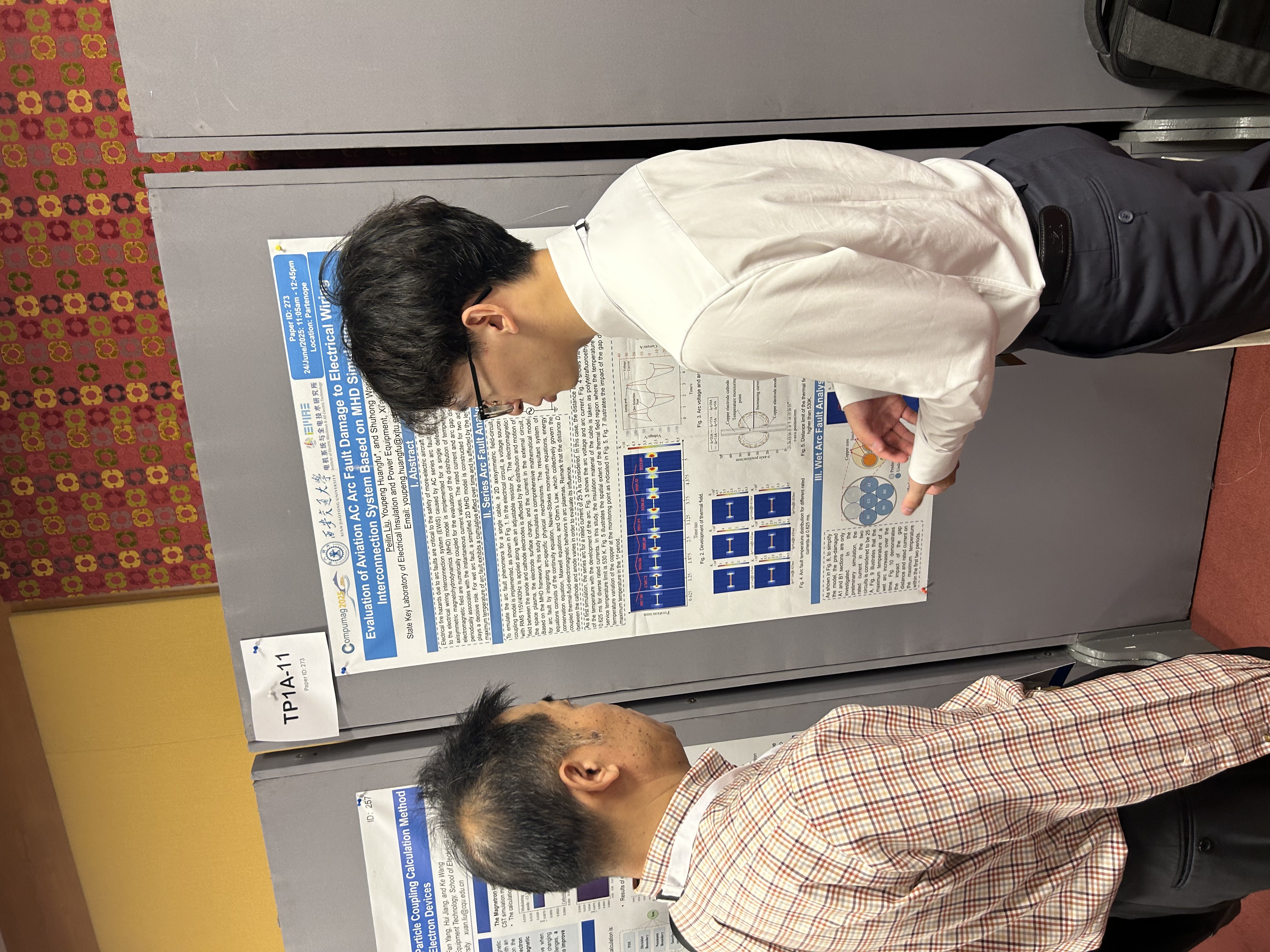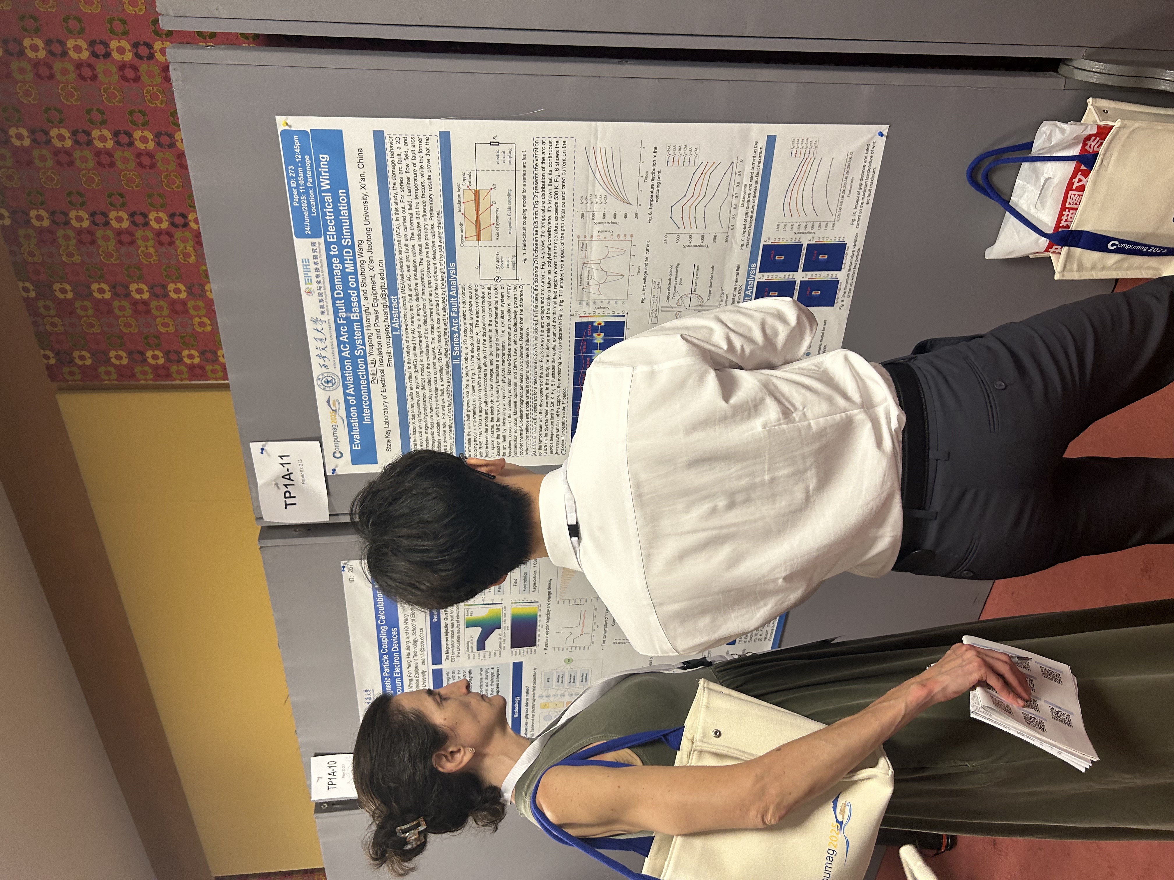 会议期间,就“Evaluation of Nonlinear Characteristics for Rectangular Rogowski Coils: Skin Effect, Proximity Effect, and Crosstalk Effect”、“Evaluation of AC Series Arc Fault Damage to Electrical Wiring Interconnection System Based on MHD Simulation”以及“Homogenization Optimization of Electric Field in Nonlinear Nonuniform Dielectrics under Pulsed Excitations”等三个方面向国际专家学者做海报展示。