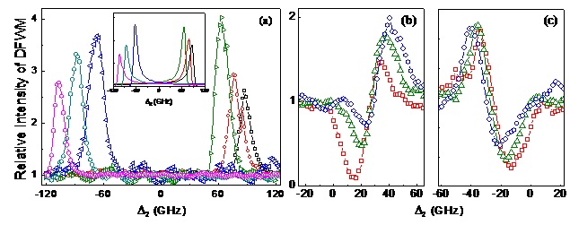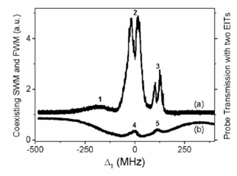 (a) 电磁诱导透明(EIT)调控多波混频相互影响及其慢光现象