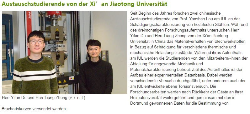 交流生杜一凡和钟良在德国Tekkaya教授课题组IUL三个月的交流学习非常快就结束了。非常感谢杜一凡和钟良带回的Tekkaya教授和好友Till赠送精美礼物,非常感谢Tekkaya教授对两位交流生的高度评价。个人希望将来能在新入学学生经过1年左右完成试验技巧,理论学习,有限元子程序编写等方面的培训后再去TU Dortmund,KAIST,POESTECH等拥有良好个人及合作关系的实验室完成交流学习和项目合作,虽然Tekkaya教授课题组也非常乐意继续接收短期的优秀本科交流生,并提供了几个合适交流时间供选择。