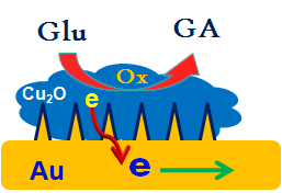 nonenzymatic glucose sensor”在生物传感和生物电子学领域著名期刊Biosensors & Bioelectronics发表。该工作通过在高粗糙度表面锚定氧化亚铜晶粒从而使金属与半导体之间获得大的电子传输通道,进而大大提高这一复合纳米材料对葡萄糖的电化学检测灵敏度。