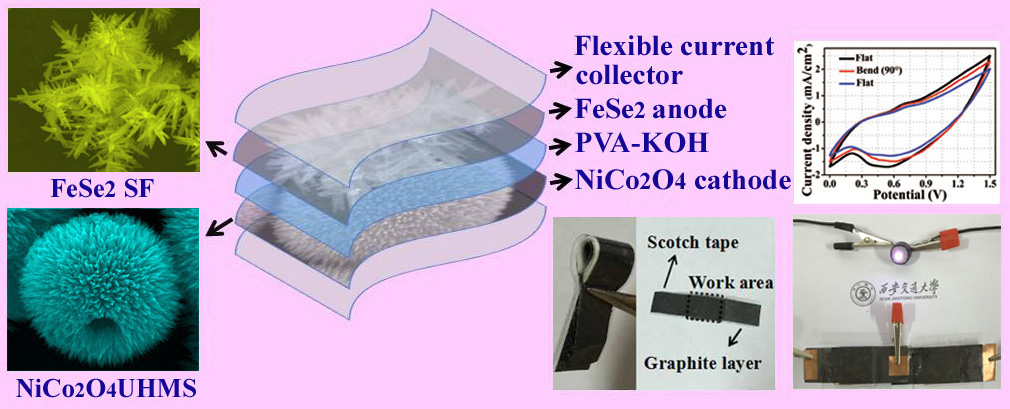 博士研究生季辰辰论文“ Urchin-like NiCo2O4 Hollow Microspheres and FeSe2 Microsnowflake for Flexible Solid-State Asymmetric Supercapacitor”被国际著名期刊“J. Chem. Mater. A ”(IF=8.26)接受。该论文通过水热和阴离子置换法,制备了结构新颖的海胆状 NiCo2O4空心球以及雪花状FeSe2纳米结构,并以此为电极材料,制备了高性能柔性超级电容器。