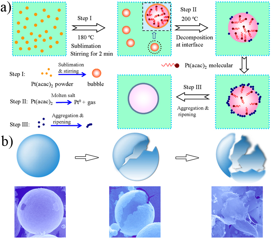 该论文首次报道了在低温熔盐体系中制备贵金属Pt纳米片和空心球壳。