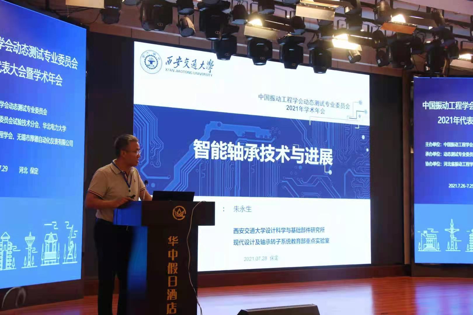 2021年7月26日至29日,中国振动工程学会动态测试专业委员会2021年代表大会暨学术年会在河北保定召开,来自全国各地230余位代表参加了本次盛会,本课题组任智军、高大为、康伟、黄凯4位博士共同出席。在本次大会上,朱永生教授再次入选中国振动工程学会动态测试专业委员会常务理事,并受邀做题为《智能轴承技术研究与进展》的大会报告,分享了智能轴承国内外进展、智能轴承理念,以及本课题组在智能轴承整体框架、智能轴承软硬件设计、智能算法研究、轴承样机研制方面的工作,引起参会代表的极大兴趣。
