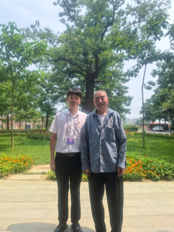 之后,我们参观了兰考县展览馆。我还特意拍下了习大大为焦裕禄同志写的那首词,字字句句都充满了深情。来到焦桐广场,我深深地被“一个人、一棵树、一座城、一种精神”所震撼。在那棵泡桐树下,有幸见到了与焦书记一同种下它的村民——魏善民老先生。今年他已经82岁了,但声音依然洪亮,身体也十分扎实。我忍不住上前与老先生合了影,他的精神风貌真是让人敬佩!站在他身旁,我仿佛能感受到焦裕禄同志那份跨越时空的坚韧与奉献。而作为交大西迁精神新传人,我也深刻体会到了西迁精神与焦裕禄精神的交相辉映,它们共同构成了一场理想信念的深度对话。