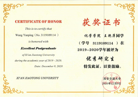 - 祝贺王艳萍同学获得“优秀研究生”荣誉!