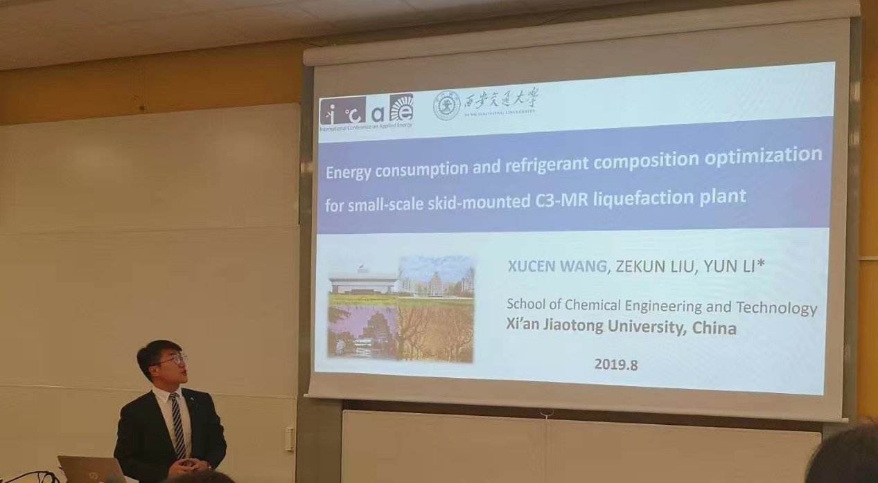 2019年8月12日-8月15日,课题组硕士王旭岑参加了在瑞典-韦斯特罗斯召开的the11th International Conference on Applied Energy (ICAE2019)会议,并作了题为”Energy Consumption and Refrigerant Composition Optimization for Small-scale Skid-mounted C3-MR Liquefaction Plant”的汇报。