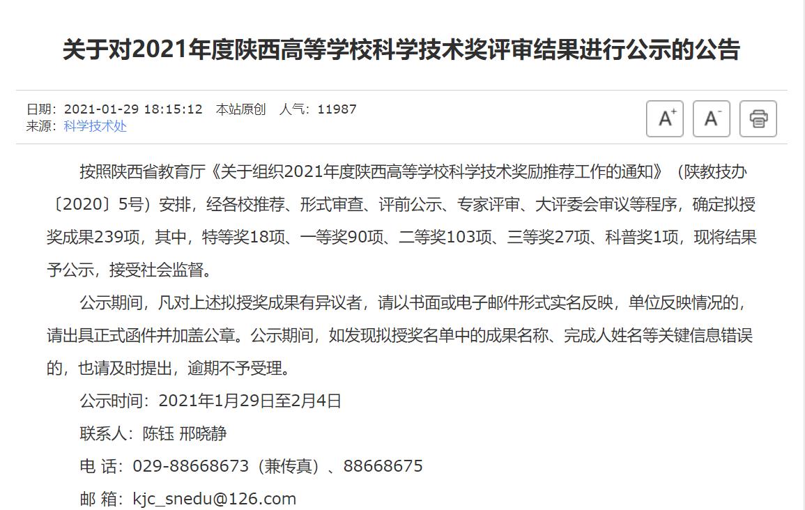 文章标题:祝贺本团队获得2021年度陕西高等学校科学技术奖一等奖