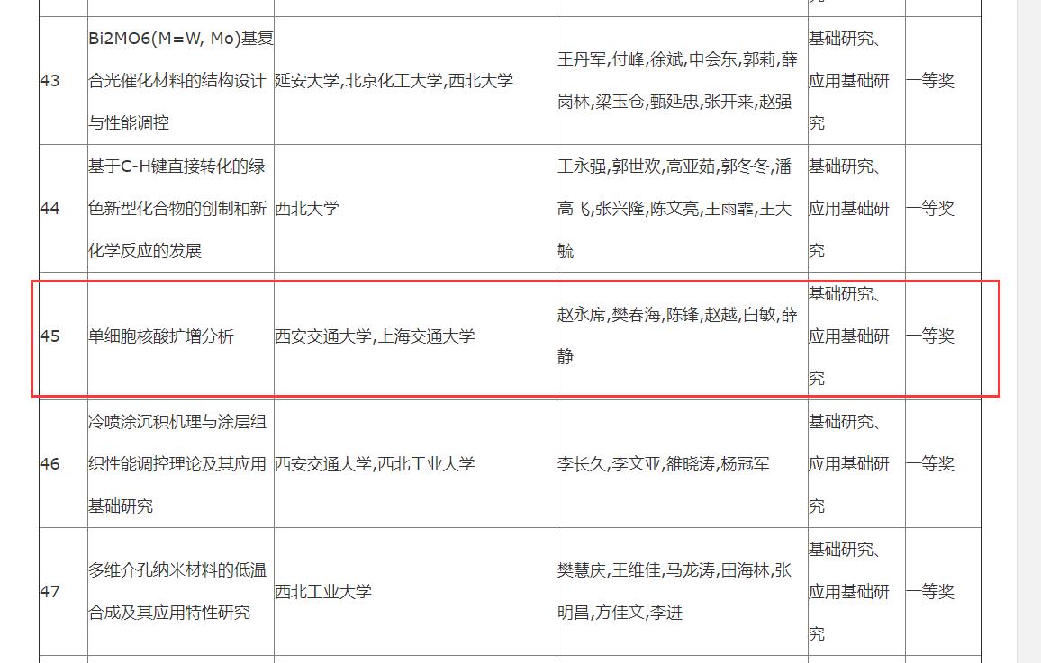 近日,陕西省教育厅公布了2021年度陕西高等学校科学技术奖评审结果。本团队完成的“单细胞核酸扩增分析”获基础研究、应用基础研究成果一等奖,祝贺。http://jyt.shaanxi.gov.cn/news/gsgg/202101/29/18694.html