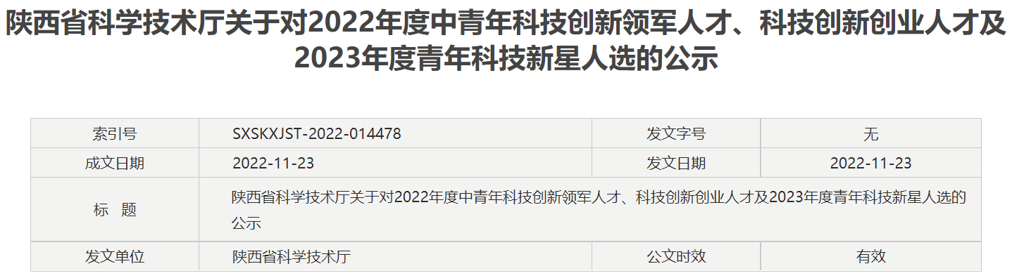 “陕西省青年科技新星”是陕西省政府为培养青年创新骨干,加速培育陕西省优秀青年科技人才,增强省科学研究和技术开发的后劲,为建设西部强省提供技术和人才储备的重要举措。选树优秀青年科技人才典型,发挥青年科技新星在科技创新中的示范引领作用,将进一步激发优秀青年科技工作者在全省经济社会发展中作出更大贡献。