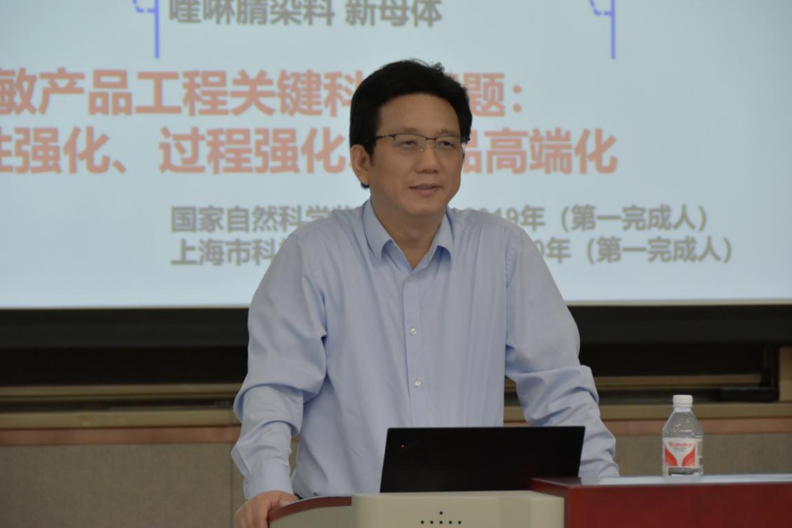 朱为宏院士围绕动态化学、分子工程与材料交融、液晶物理学三个部分,并基于策源光敏产品新机制和新策略、源头创新光敏材料新体系及光敏产品高端化,简要介绍了锚定组装构筑超薄空穴传输层、原位重构COF材料、D-A-п-A光敏染料新模型、位阻型光敏染料新体系以及防伪、圆偏振发光、变色玻璃等高端光敏产品方面的工作。他强调,光敏产品工程关键科技问题在于稳定性强化、过程强化和产品高端化。